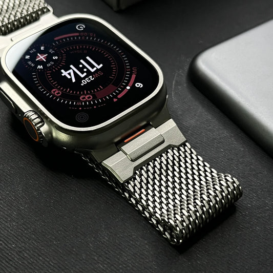 Your Apple Watch deserves a band that matches your personality—whether you're chasing deadlines, crushing workouts, or making a statement. At Nava Bands, we craft ultra-comfortable, stylish straps using premium materials like scratch-resistant ceramic, breathable silicone, and genuine leather to perfectly fit 38mm to 49mm models. Our secure-adjustment designs ensure a flawless fit for all-day comfort, while bold colors and minimalist finishes let you switch from gym to gala effortlessly. For those who demand both luxury and durability, our best-selling titanium Magna Link and sport bands with sweat-proof linings are game-changers. Plus, with exclusive deals, you can own multiple looks without breaking the bank.