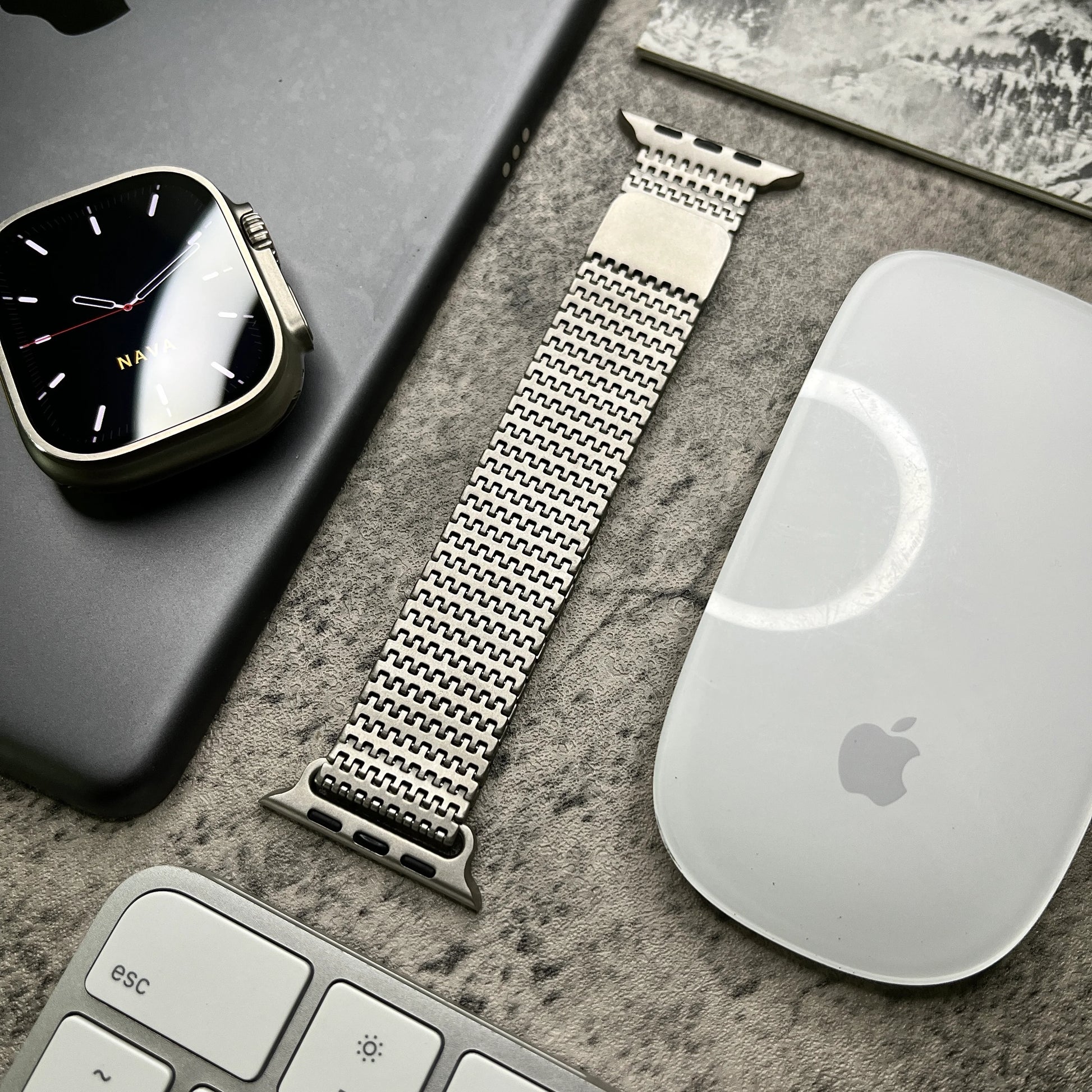 Elevate your Apple Watch with the Aero Mesh —a perfect fusion of luxury and innovation. Designed with a sleek aerospace-grade titanium finish, this band offers lightweight durability and timeless elegance for any occasion.