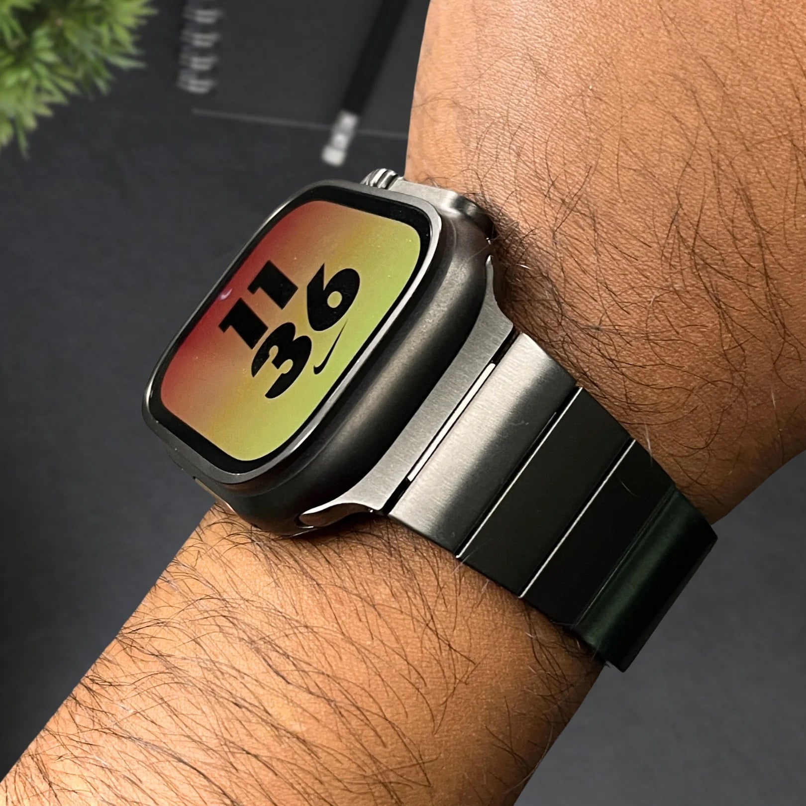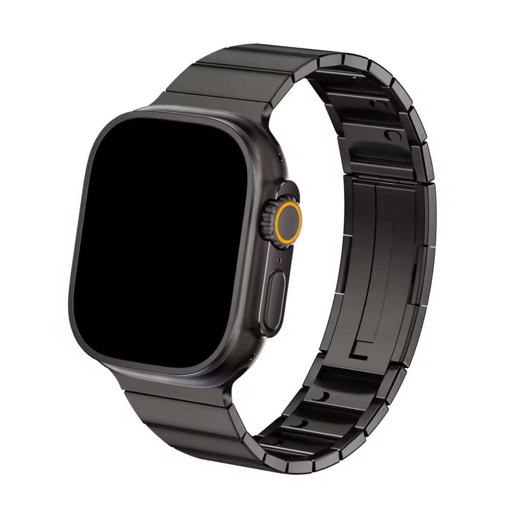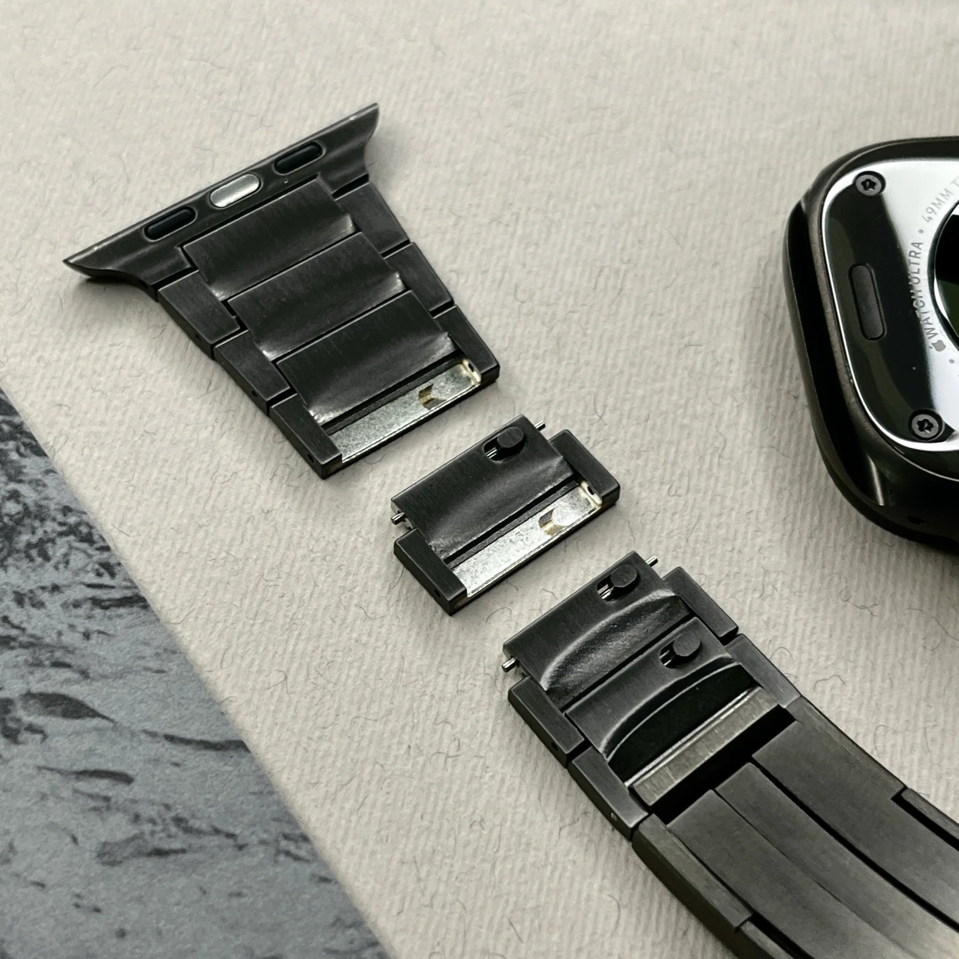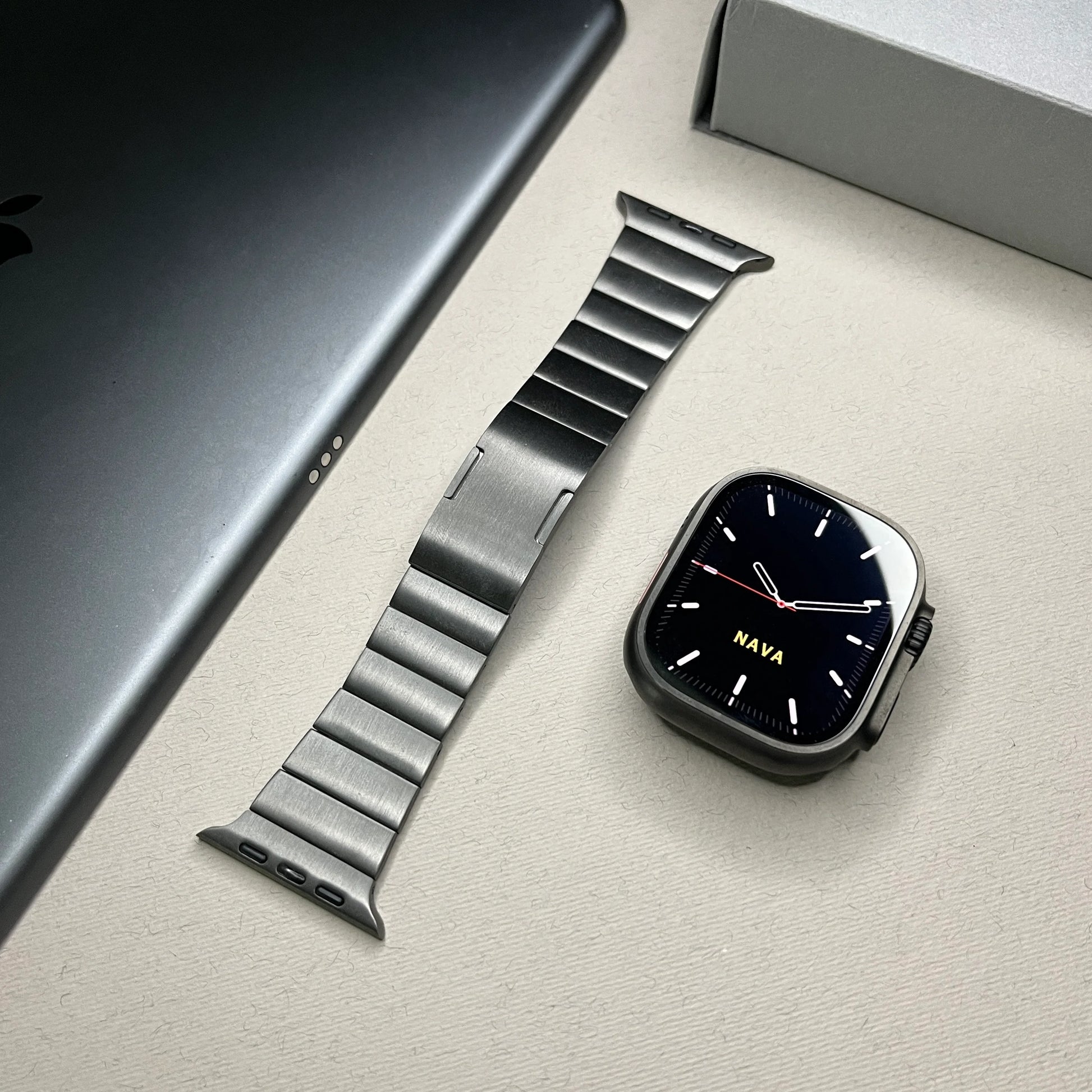 Upgrade your Apple Watch with the Lumen Link, a titanium-finished stainless steel band designed for style and convenience. Featuring a secure deployment clasp, it ensures a snug, comfortable fit with easy adjustments—no tools required. The seamless attachment system allows for quick removal and effortless wear, making it perfect for any occasion. Crafted for durability, it’s sweat-proof, rust-resistant, and built to complement both business and casual looks. Elevate your Apple Watch with a band that combines sophistication with ultimate ease of use.
