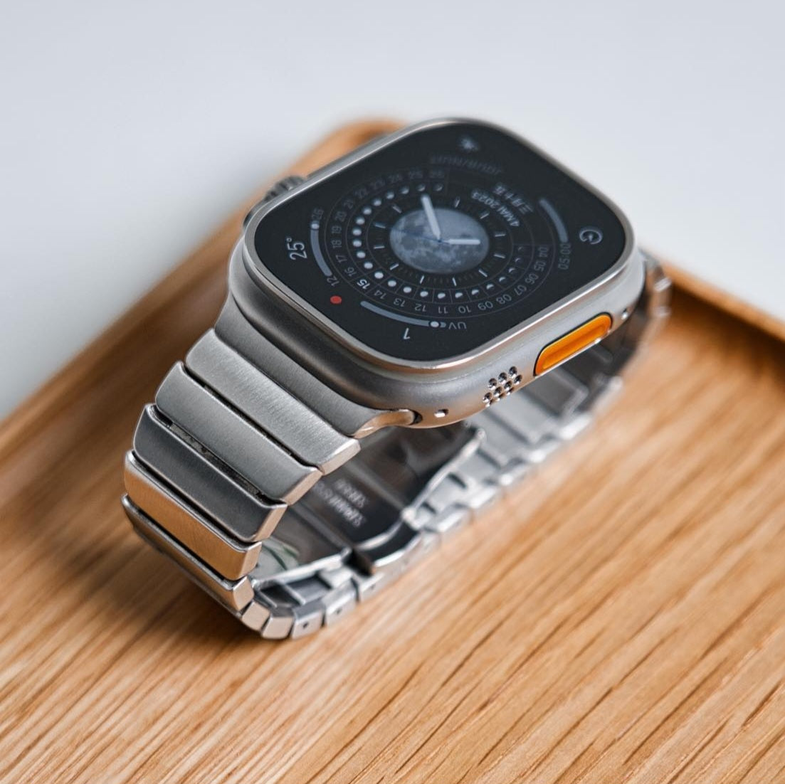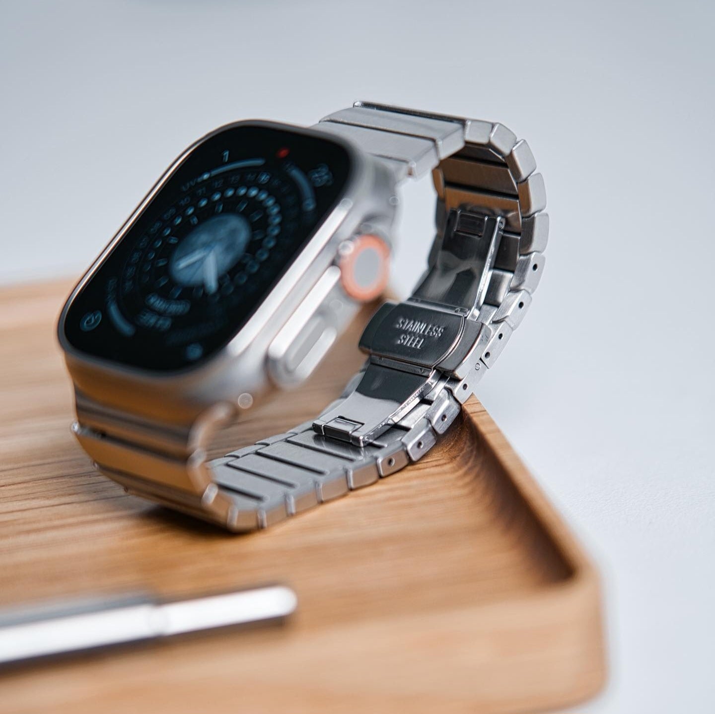 A weighted, premium look to upgrade your Apple Watch for that 'ultra' luxurious feel. High-quality brushed stainless steel finish that instantly screams quality and sophistication.