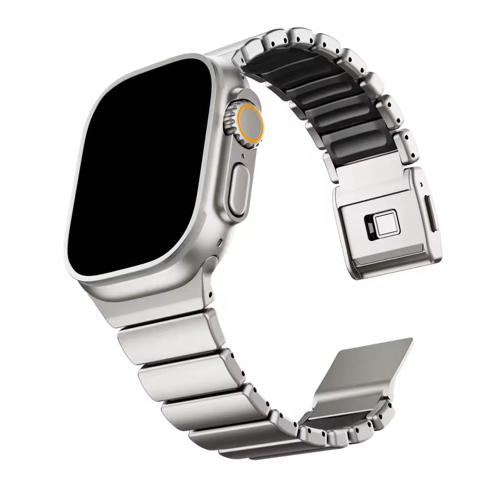 Engineered for those who demand uncompromising performance and style, the Magna Link 2.0 seamlessly blends rugged durability with everyday sophistication. Designed for the Apple Watch Ultra and Series, this hybrid strap combines a silicone core for all-day comfort with a premium FKM rubber interior built to resist sweat, moisture, and extreme conditions.