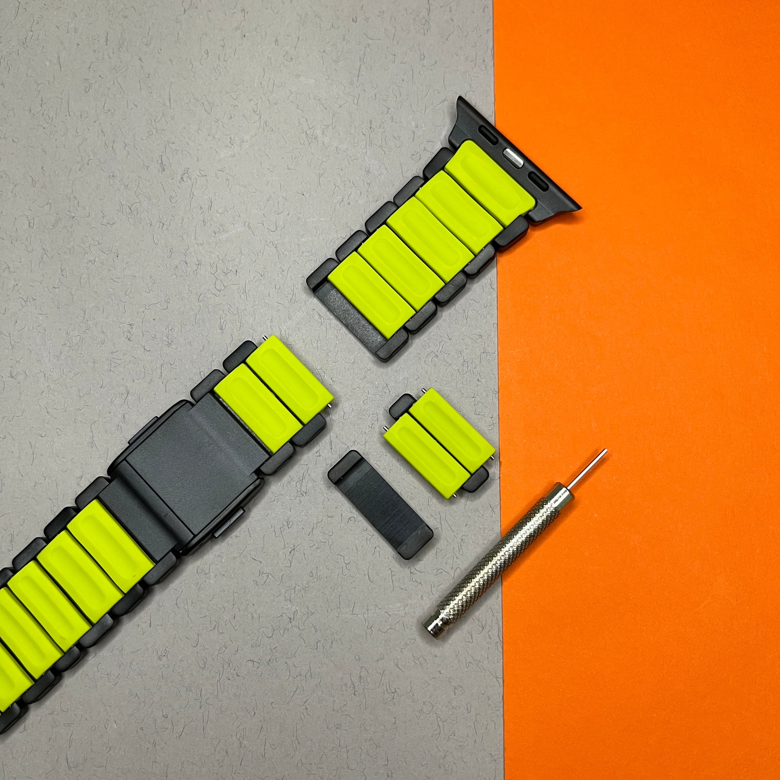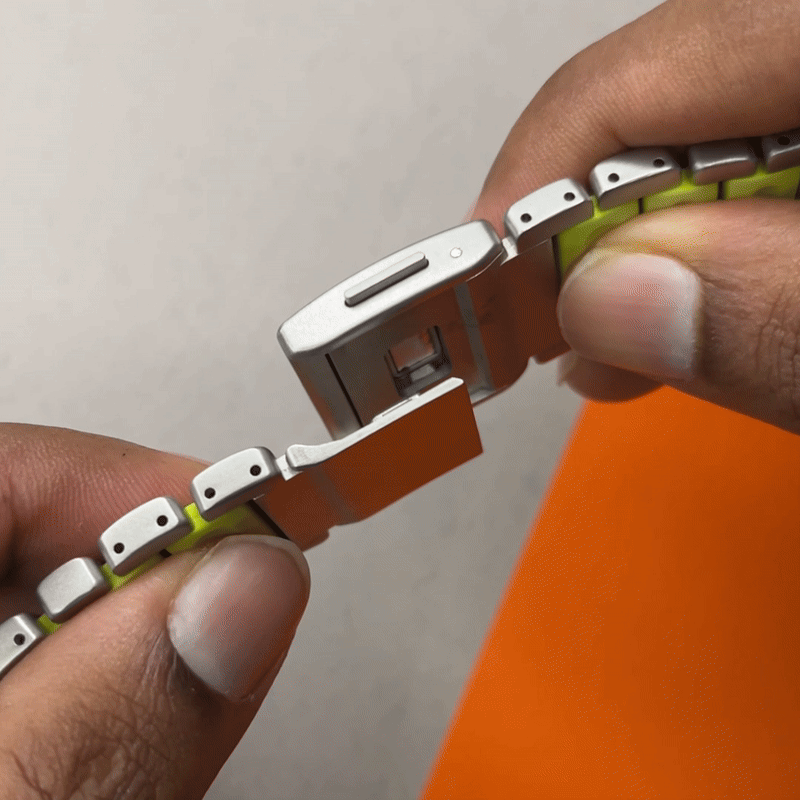 The Magna Link prioritizes both security and convenience. The innovative bespoke magnetic clasp keeps your Apple Watch Ultra firmly secured during any activity. Need to adjust or remove the band? The intuitive design allows for effortless attachment and removal.