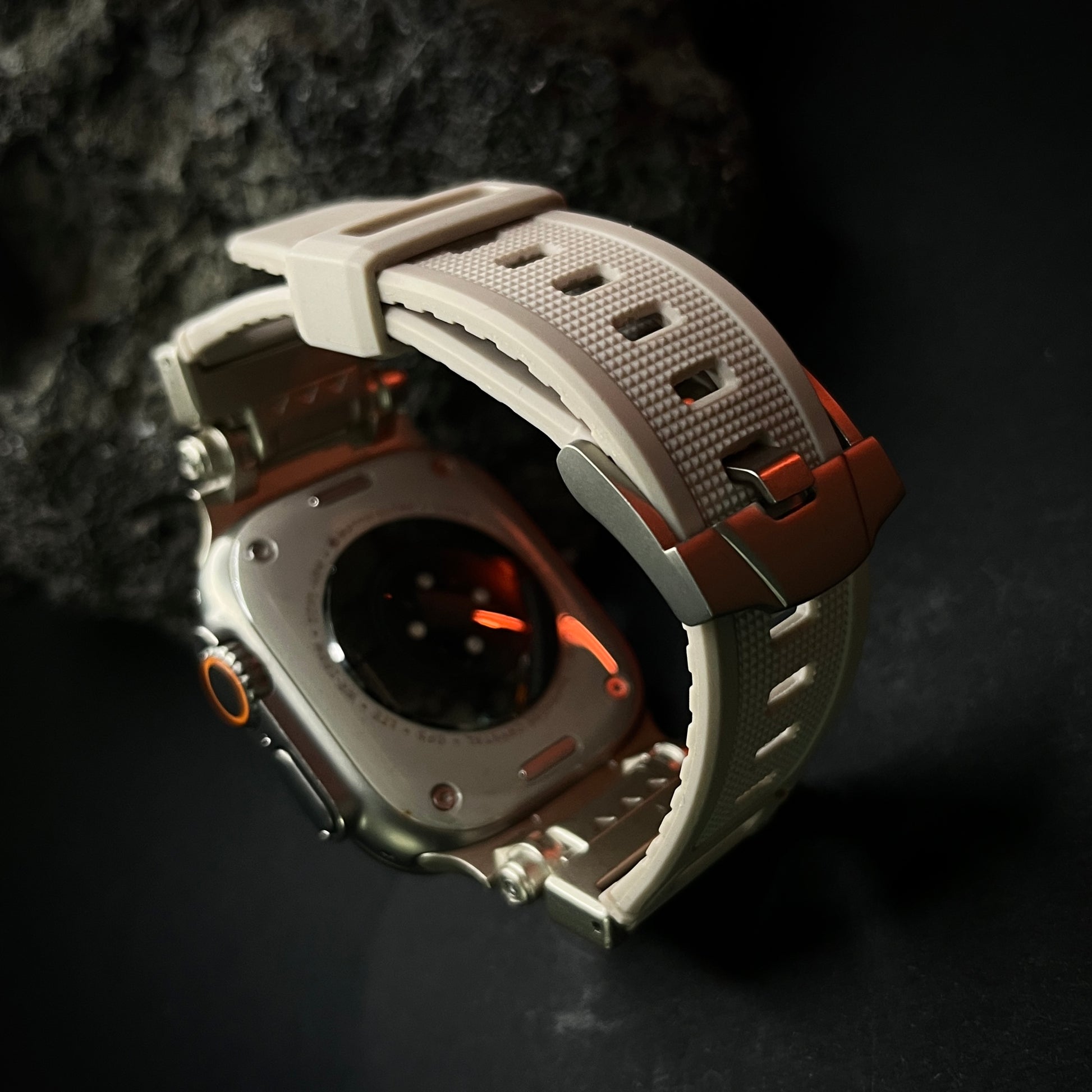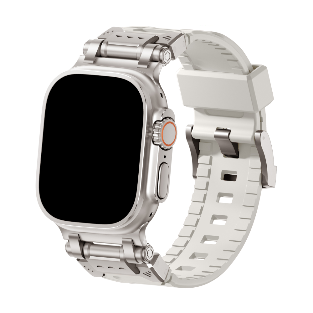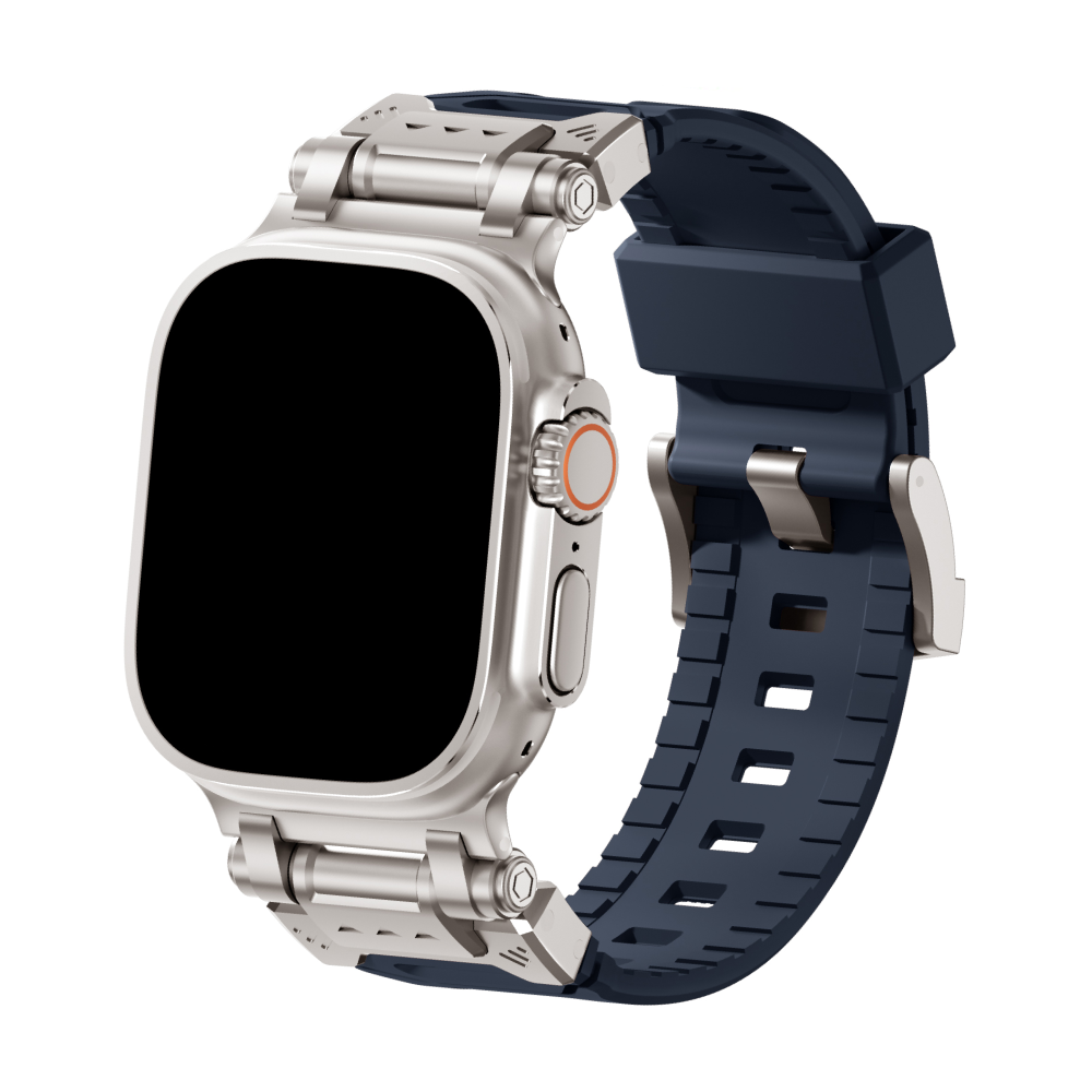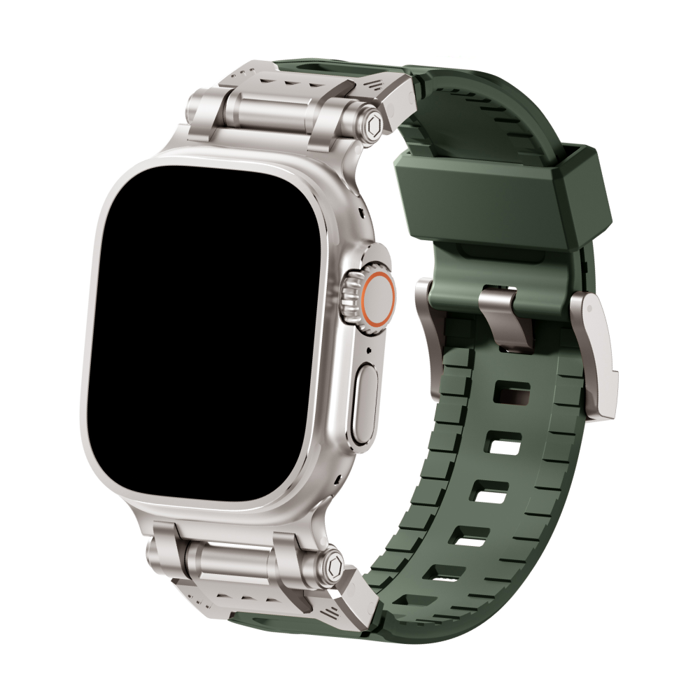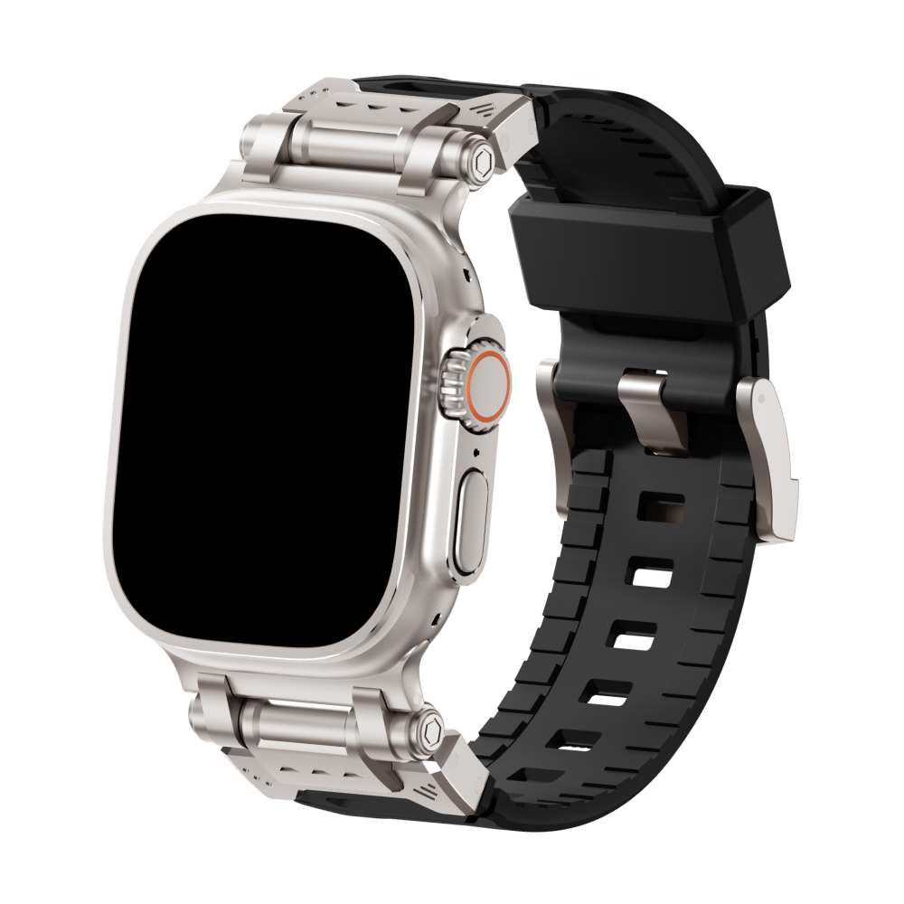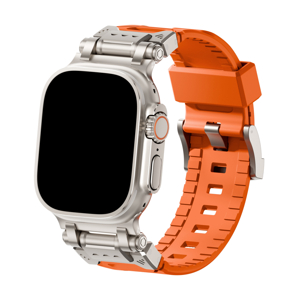 Elevate your Apple Watch Ultra experience with our rugged Silicone Strap, designed for those who seek adventure and durability. Featuring color-coordinated metal connectors that perfectly complement the titanium enclosure of the Apple Watch Ultra, this band offers a seamless blend of style and function. Tailored for a perfect fit, this band is compatible with a wide range of Apple Watch models, including the Ultras.