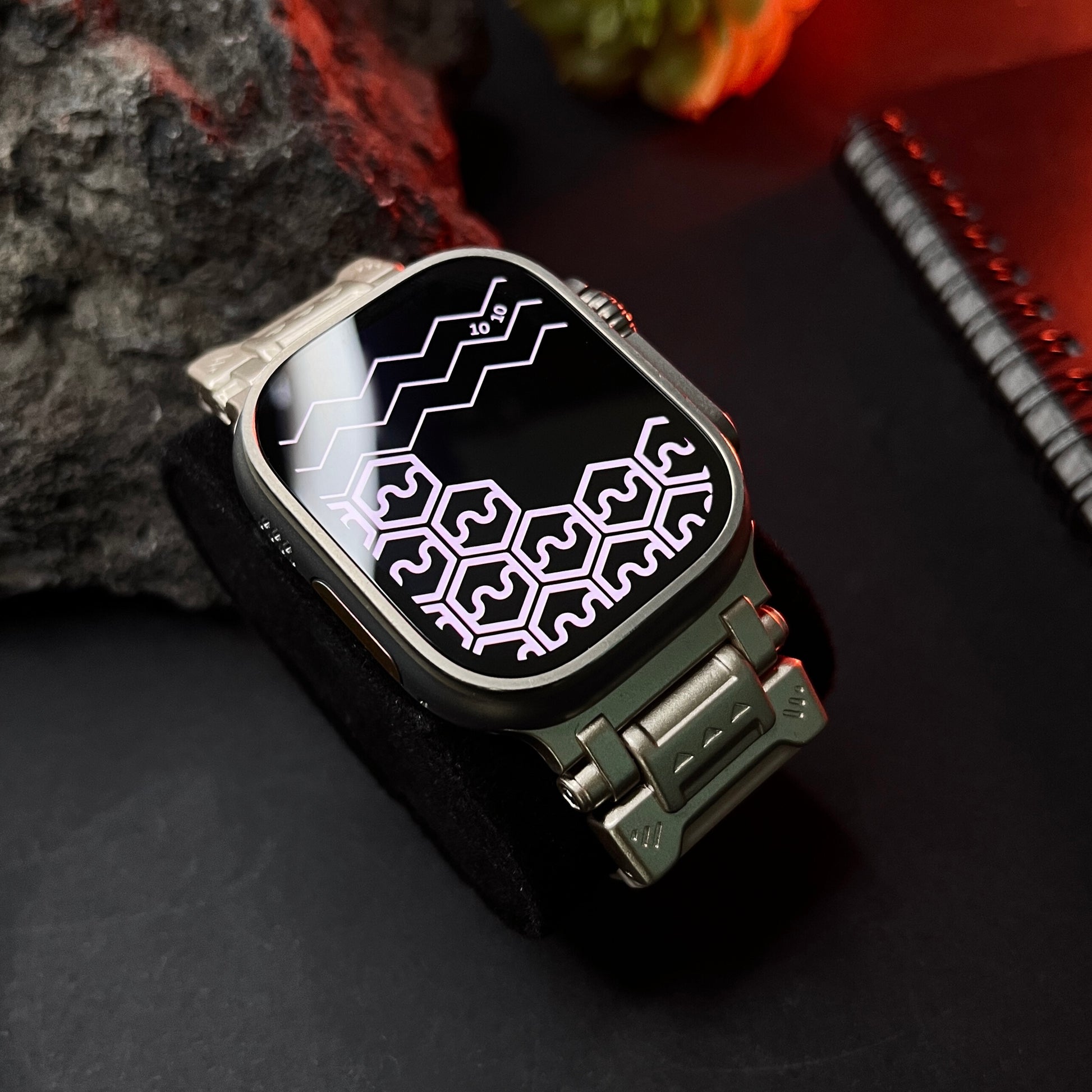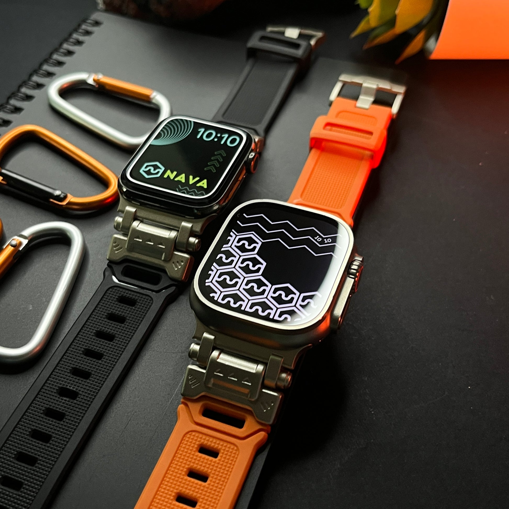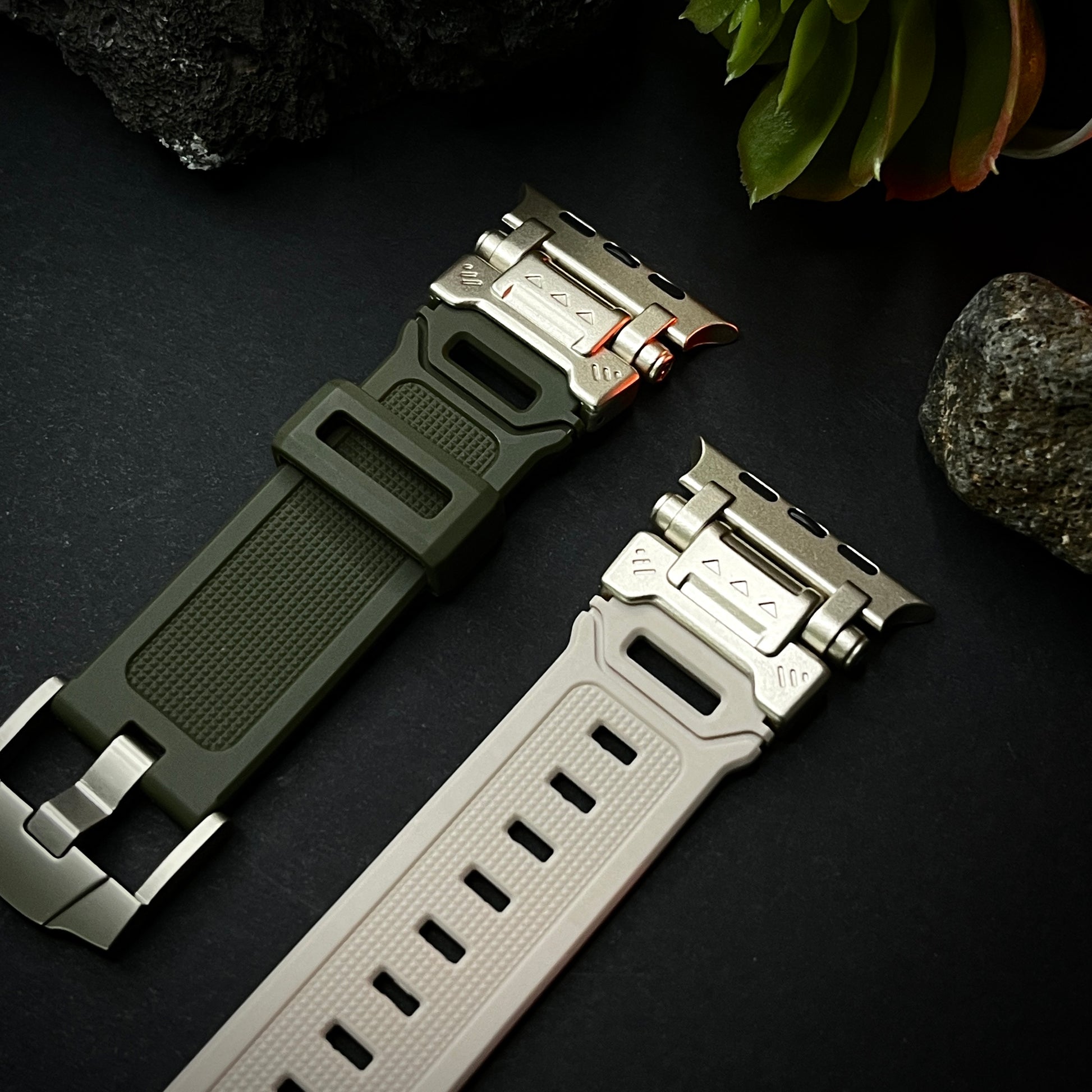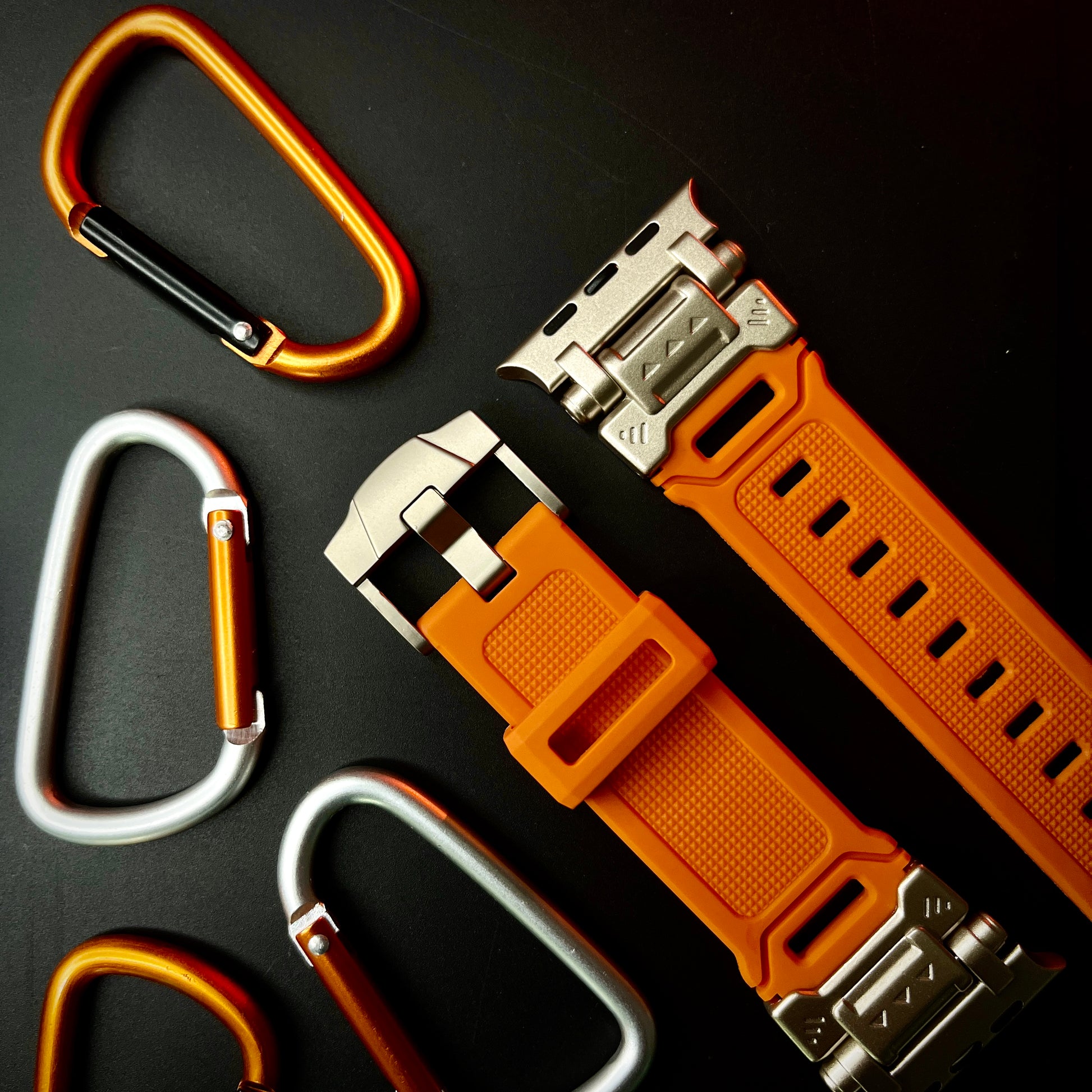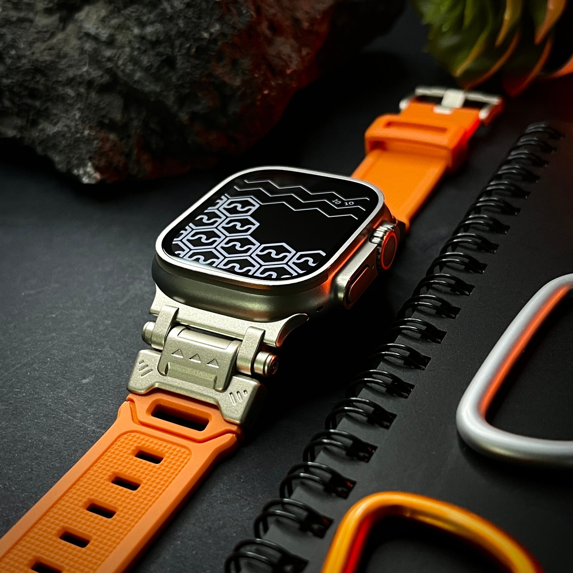 Elevate your Apple Watch Ultra experience with our rugged Silicone Strap, designed for those who seek adventure and durability. Featuring color-coordinated metal connectors that perfectly complement the titanium enclosure of the Apple Watch Ultra, this band offers a seamless blend of style and function. Tailored for a perfect fit, this band is compatible with a wide range of Apple Watch models, including the Ultras.