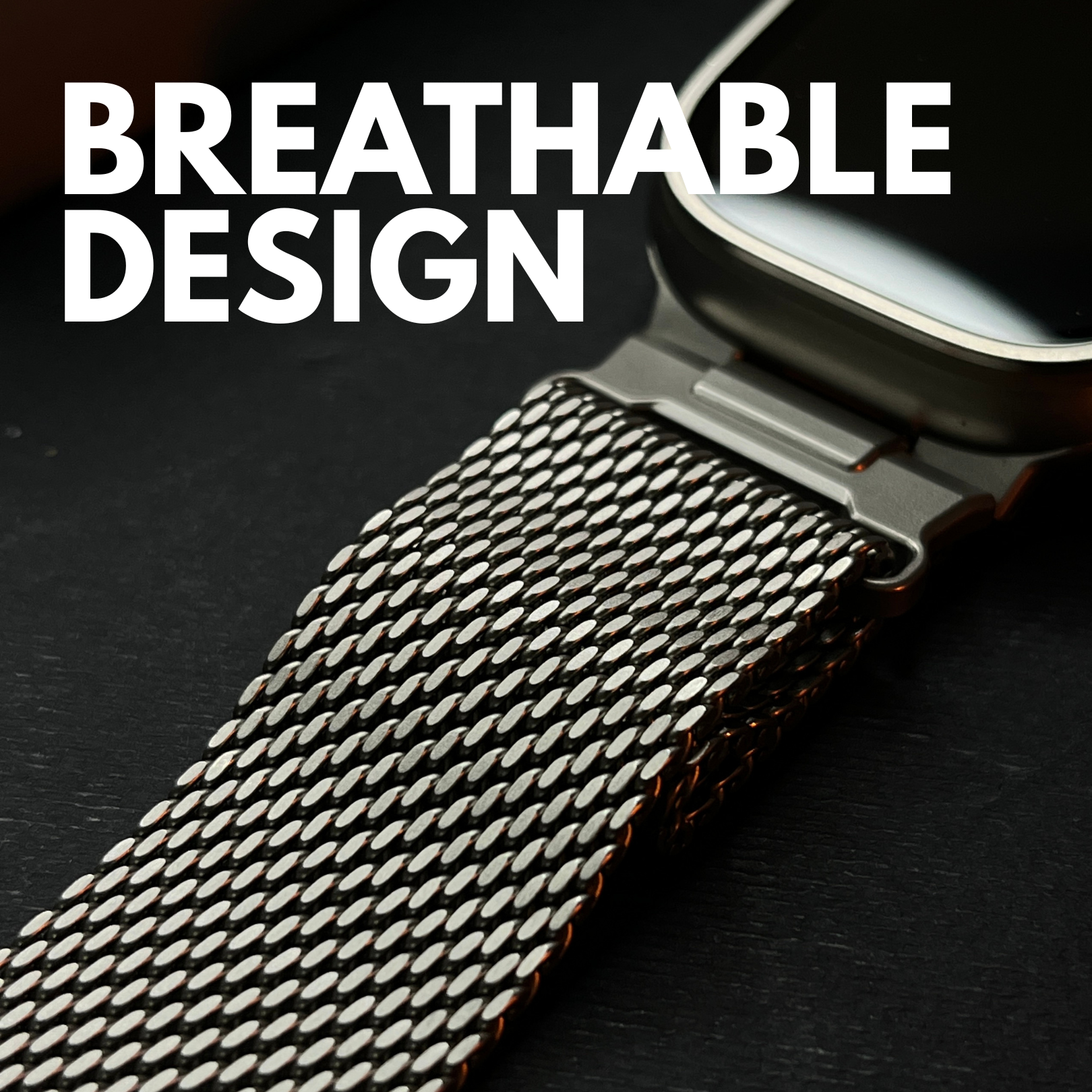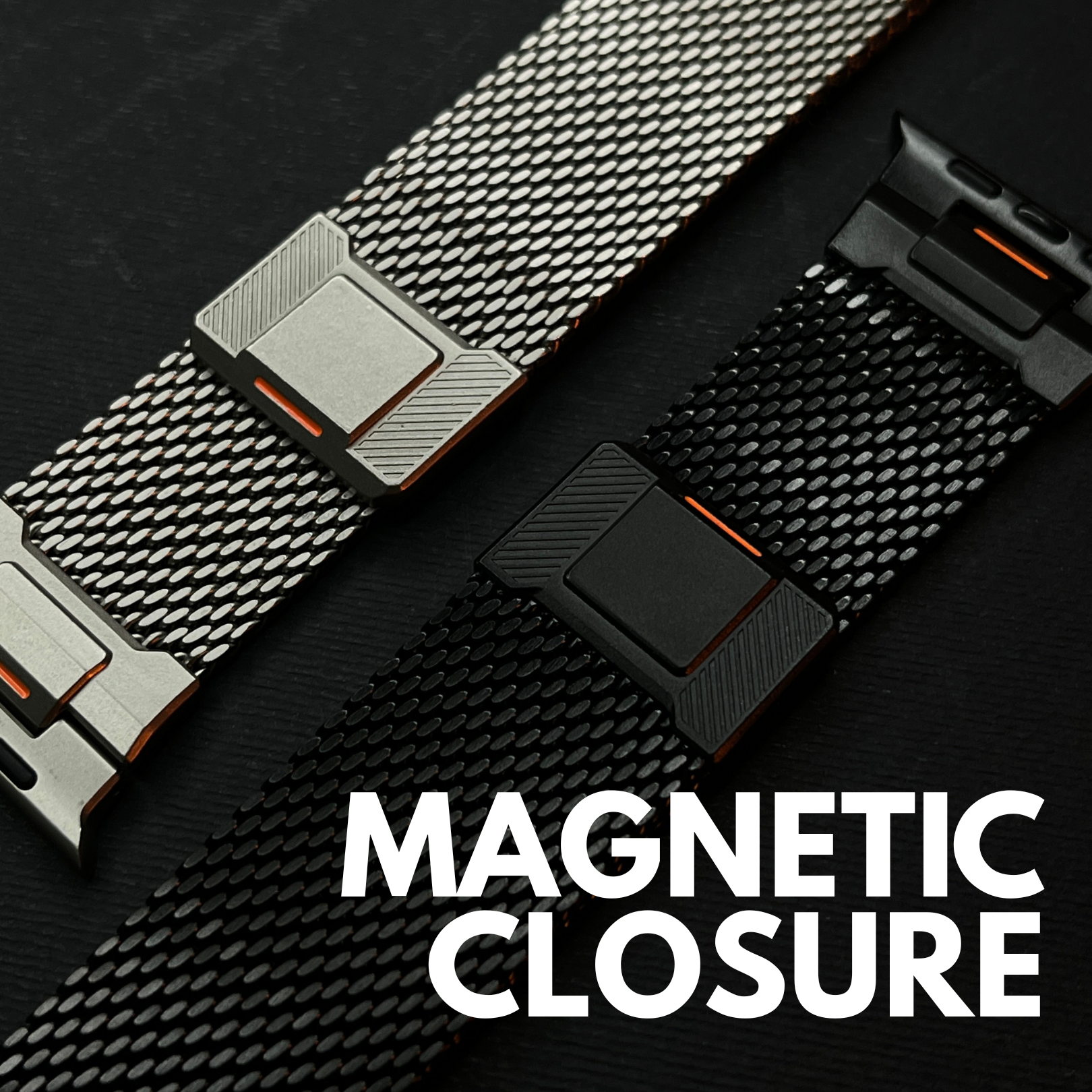 Precision-engineered stainless steel with a premium titanium finish. A fully magnetic closure provides a custom, secure fit. Lightweight and elegantly breathable, it’s the ultimate blend of tailored comfort and sophisticated style.