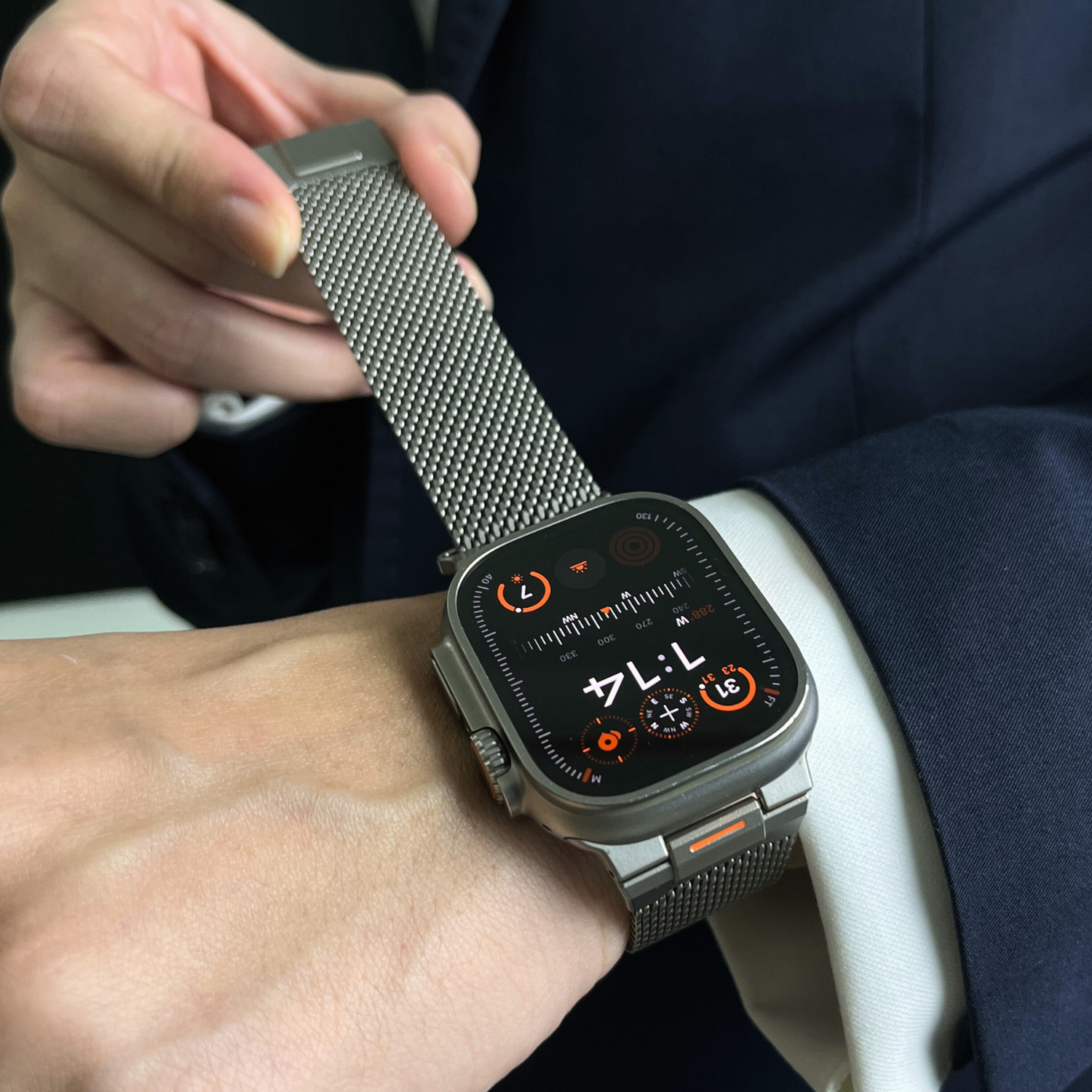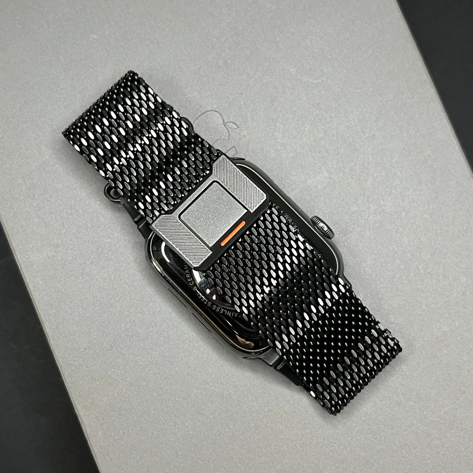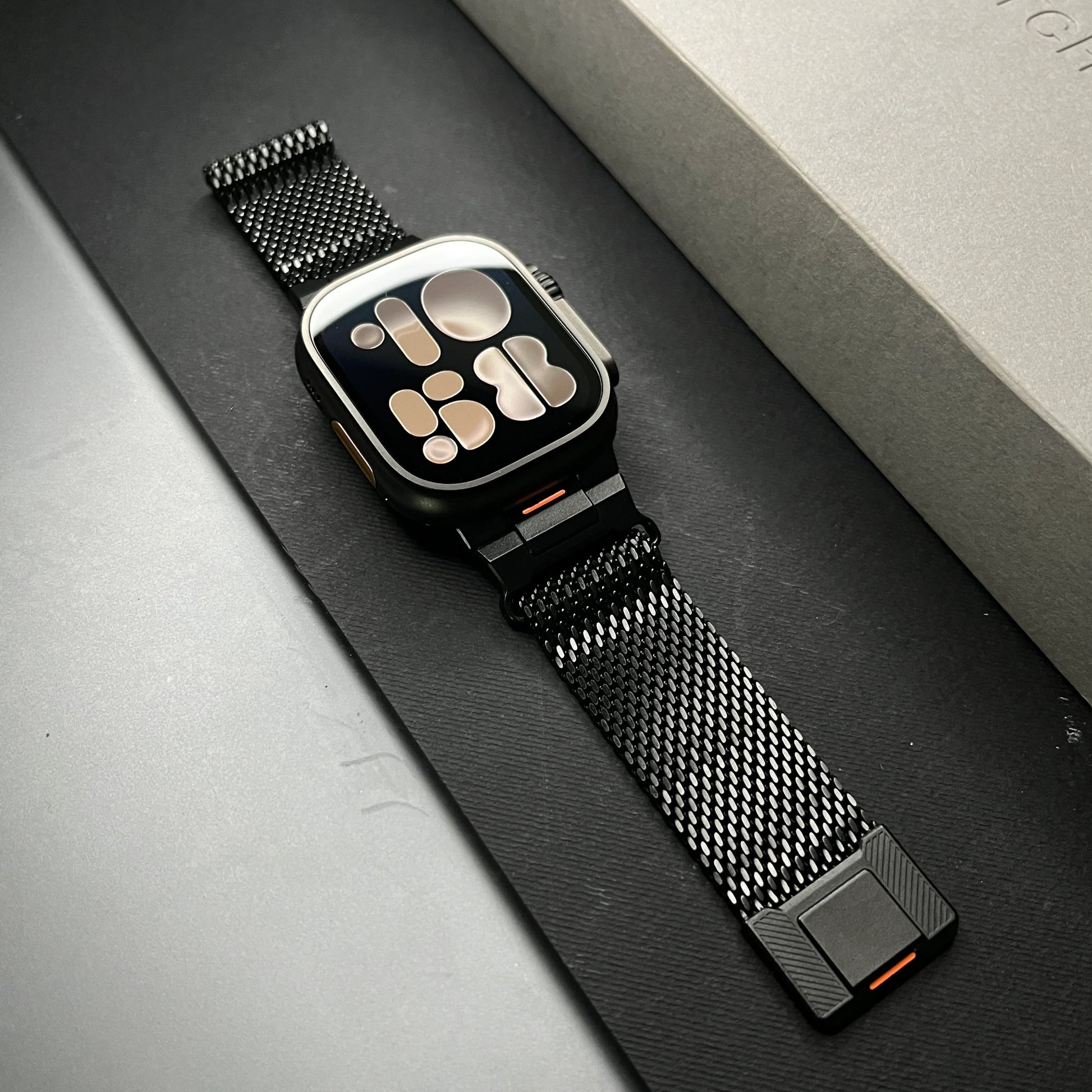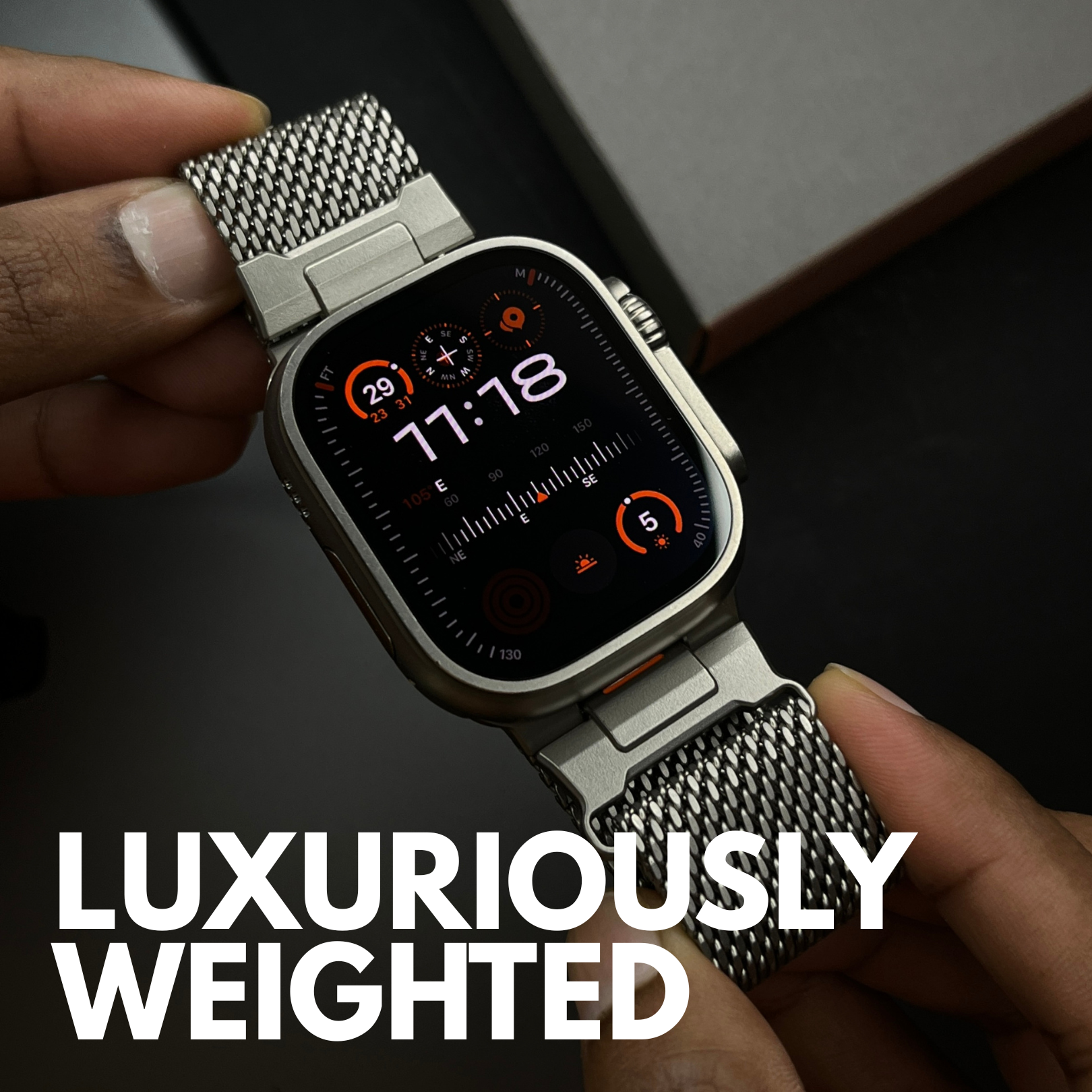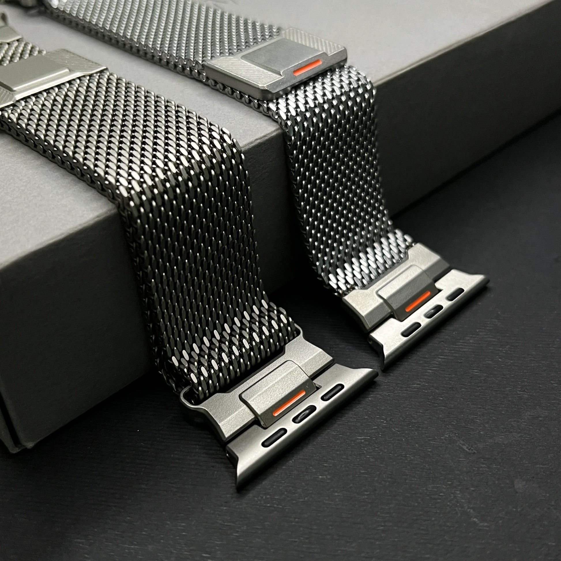 Elevate your Apple Watch with the Strato Link, where modern design meets personalized comfort. Meticulously crafted from premium stainless steel with a lustrous titanium finish, this band features a fluid, link-style design that wraps seamlessly around your wrist for a truly custom feel.