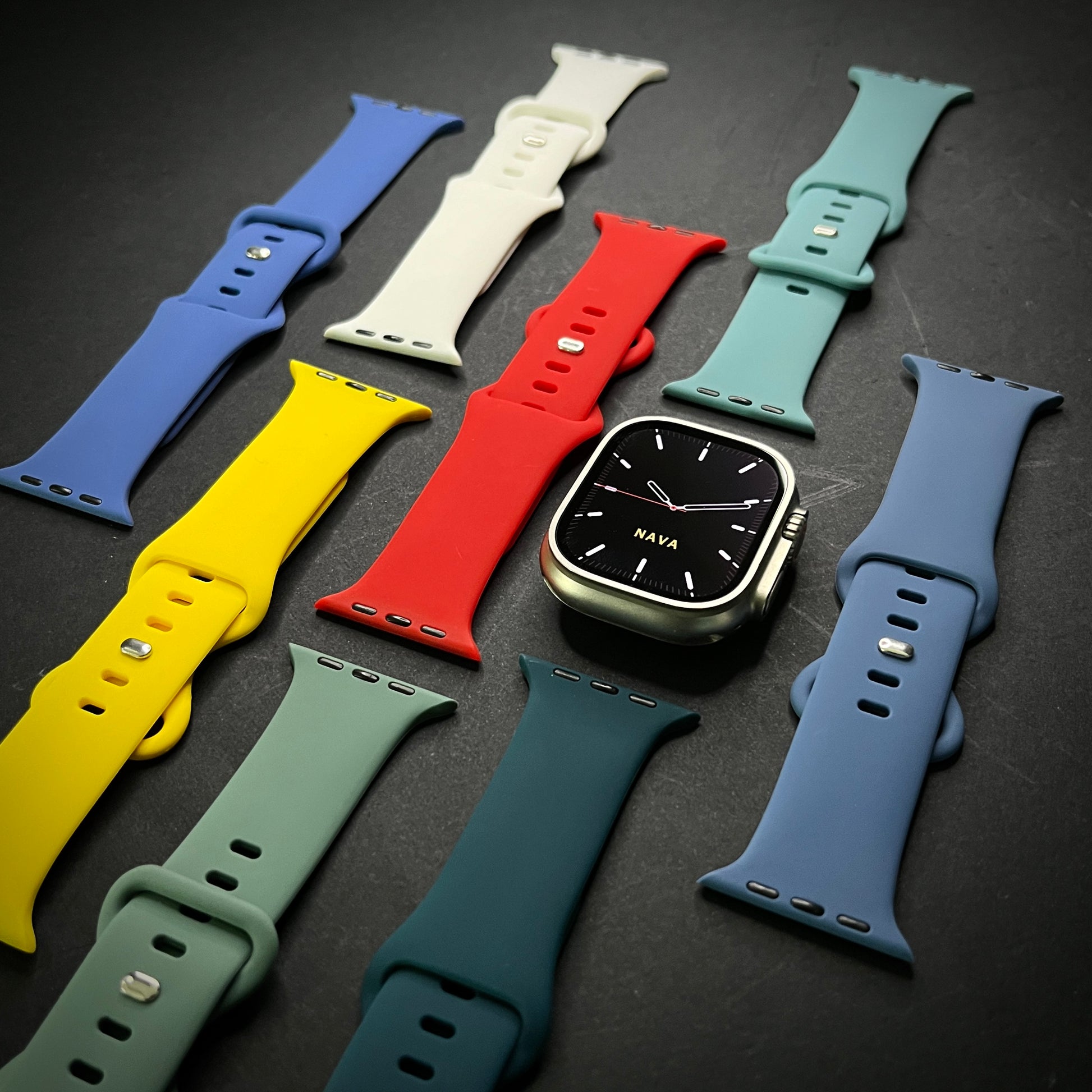 A must-have for any Apple Watch owner is our classic SWIFT BANDS. These Silicone Bands are manufactured from a unique high-performance fluoro-elomaster and rubber for durability and strength, and are very adaptable and designed for optimal comfort. The pin-and-tuck closure is hypoallergenic and nickel-free, and it fits snugly and comfortably on the skin. There's a color for each day of the week, of course!